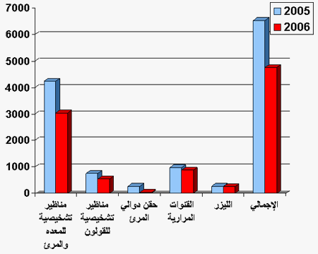 :: بيان إحصائي لأنشطة المناظير خلال 2005 / 2006 ::