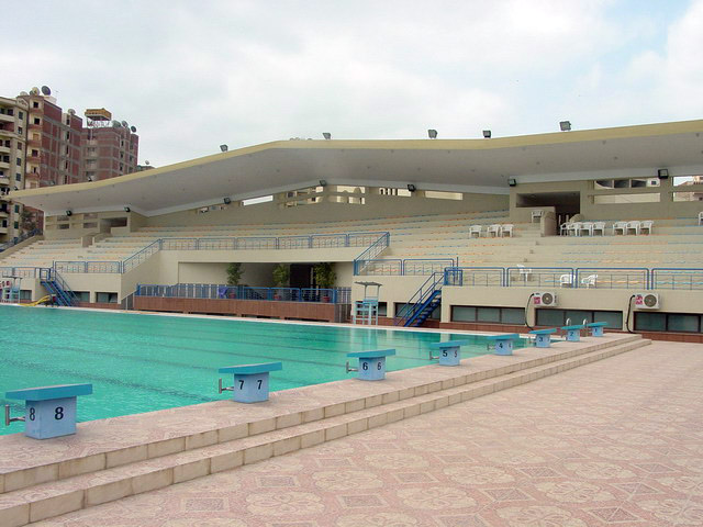 والمقام على مساحة 6000متر مربع ويضم حمام سباحة أولمبي وحمام تدريبي وحمام أطفال .يبدأ العمل بالمجمع من السادسة صباحا حتى الواحدة بعد منتصف الليل يوميا ومتوسط عدد مستخدميه اليومي ما يقرب من 1400فرد ، ويوجد به مدرسة لتعليم السباحة للرجال حيث يقوم بتعليم أكثر من 600 فرد و أخرى للسيدات تقوم بتعليم أكثر من 80 مشتركة بالإضافة إلى أكثر من 260 فرد مشترك بالسباحة الحرة كما يتردد على حمام الأطفال 30طفل ويخدم المجمع 30مدرب ومدربة ومنقذين على أعلى مستوى من الكفاءة .